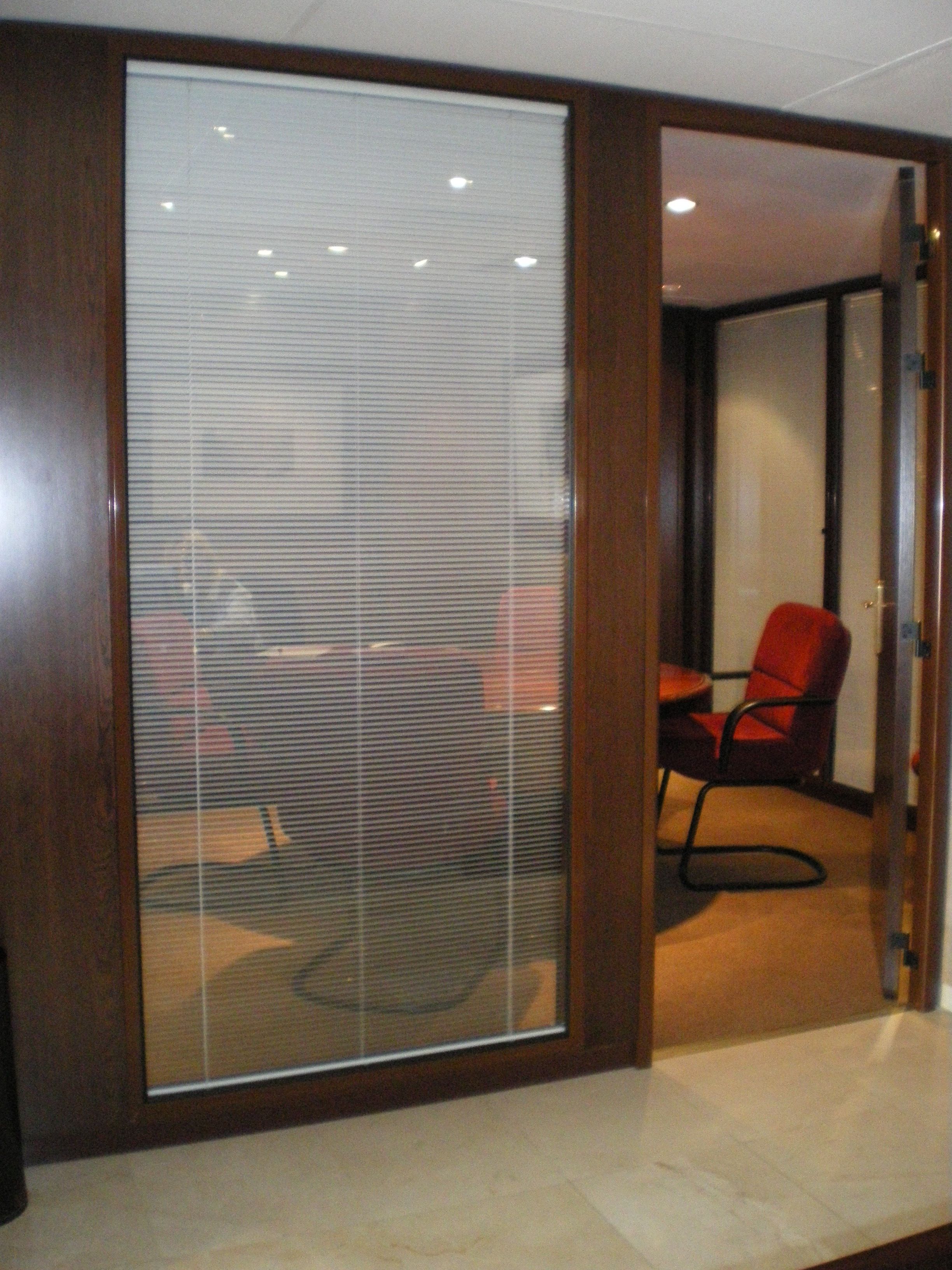 Posibilidad de incorporar vinilo o cortinas venecianas en el interior para personalizar la mampara.